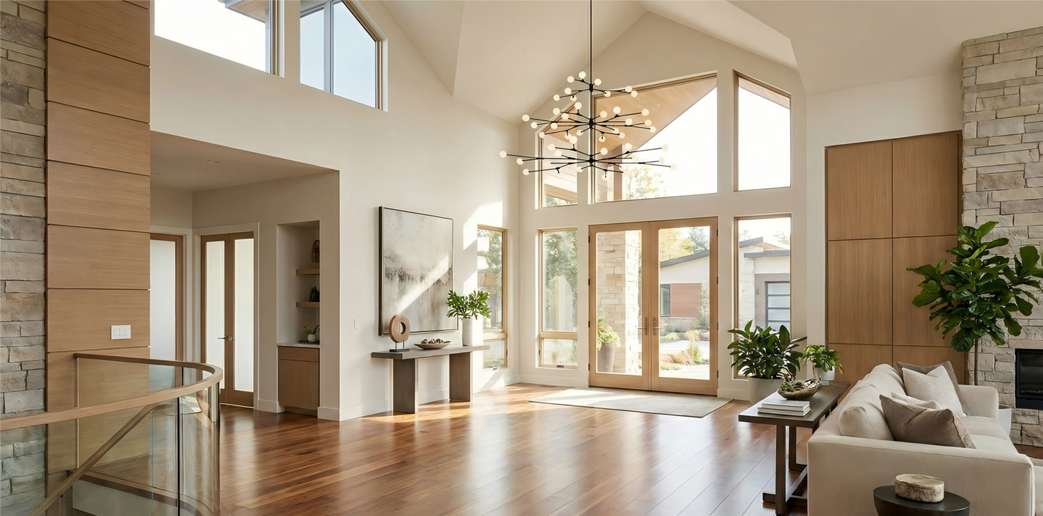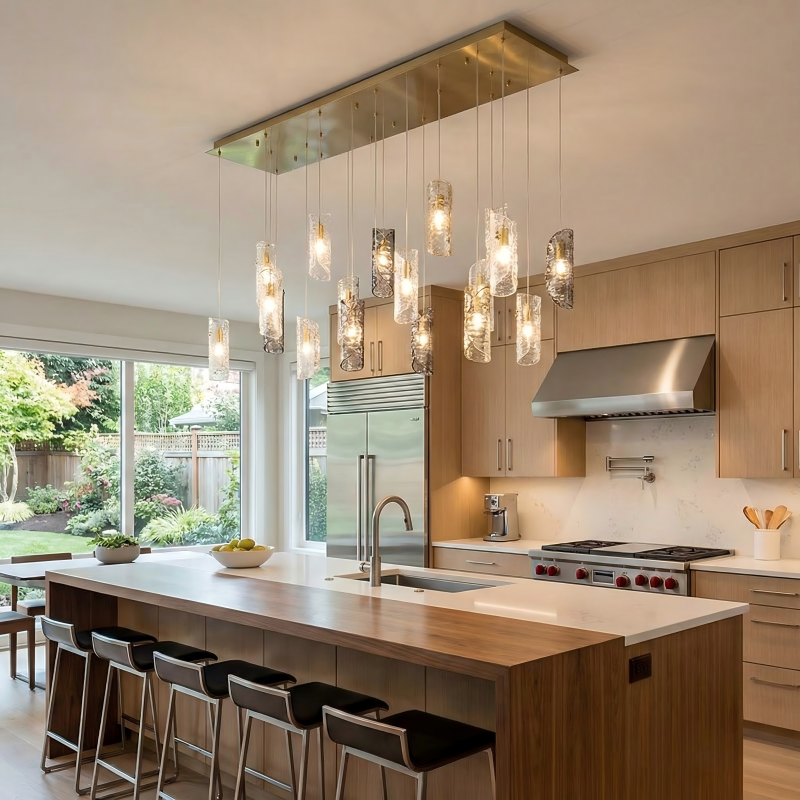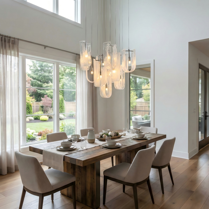 Every glass shade on an Aurorae chandelier is hand-blown — shaped by breath, gravity, and heat. No two pieces are identical. That is not a defect. It is the entire point.